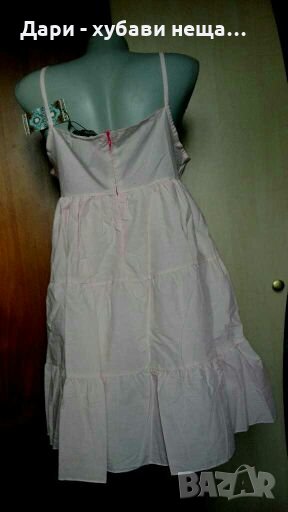 Страхотен млечно розов гащеризон - рокля (предлага се и в бял цвят).Интересен модел от памучна рязана дантела!Стои кокетно встрани, а панталонките не позволяват триенето при бедрата.Подходящ е и за бременни. Без еластичност, подходящ е за дами, носещи М/L, или L р-р .