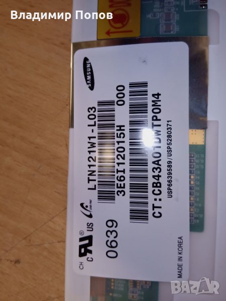 Продавам матрица за лаптоп 12.1" LTN121W1-L03, снимка 1 - Части за лаптопи - 33398784 Продавам матрица за лаптоп 12.1" LTN121W1-L03, снимка 2 - Части за лаптопи - 33398784 Продавам матрица за лаптоп 12.1" LTN121W1-L03, снимка 3 - Части за лаптопи - 33398784 Продавам матрица за лаптоп 12.1" LTN121W1-L03, снимка 4 - Части за лаптопи - 33398784 1/4