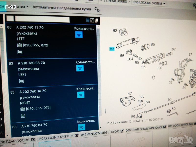 A2027601570**NEU**MERCEDES-BENZ**W202**W210**дръжка на задните врати*