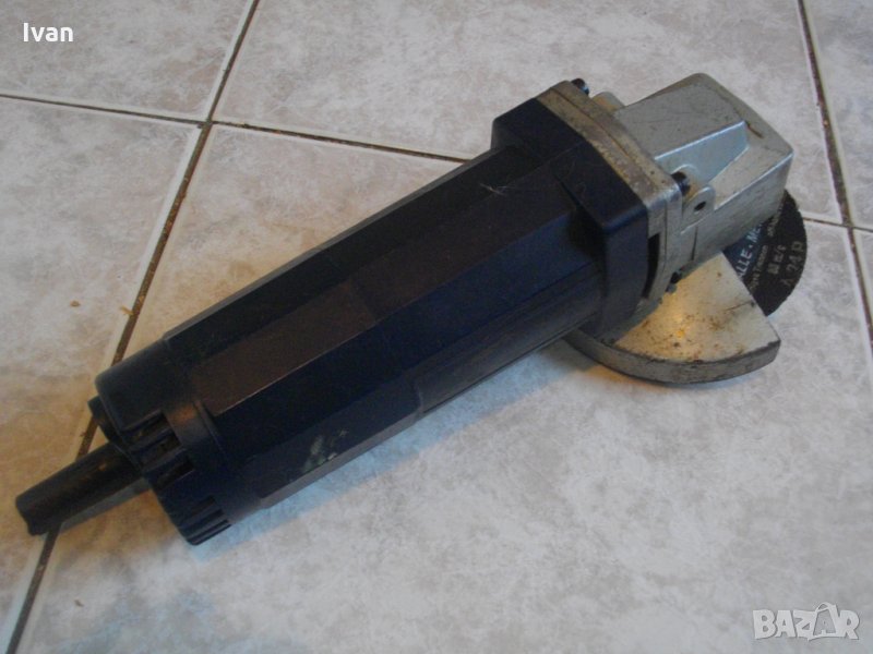 малък ъглошлайф. Машината се предлага за части цяла или за ремонт - някой да си я оправи. Липсват стикерите с данни, но е от старото масивно здраво качество. Отрязан кабел и липсващ пусков ключ. Наличен масивен мек.тален предпазител. наличен диск оригинален немски ф 1115 мм. Корпус - твърда пластмаса. Предполагам ротора е здрав вътре. Редукторна кутия отпред - масивна дебело желязо.