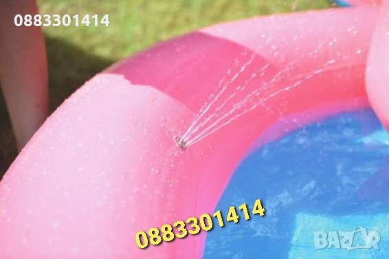 Детски басейн с пързалка и пръскалка розово фламинго.