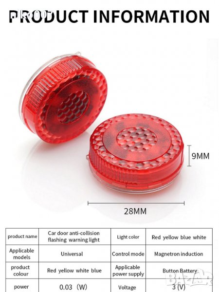 Безжични магнитни предупредителни светлини за отваряне на вратите на автомобила.