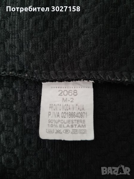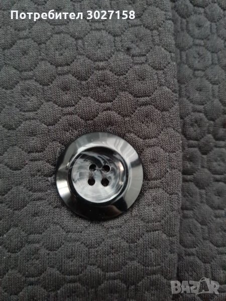 Черно сако с еластан. Не се мачка. От интересна материя с ефекти (както се вижда на снимките). Обличано няколко пъти, но без следи от употреба. Джобовете са истински. Произведено в Италия.