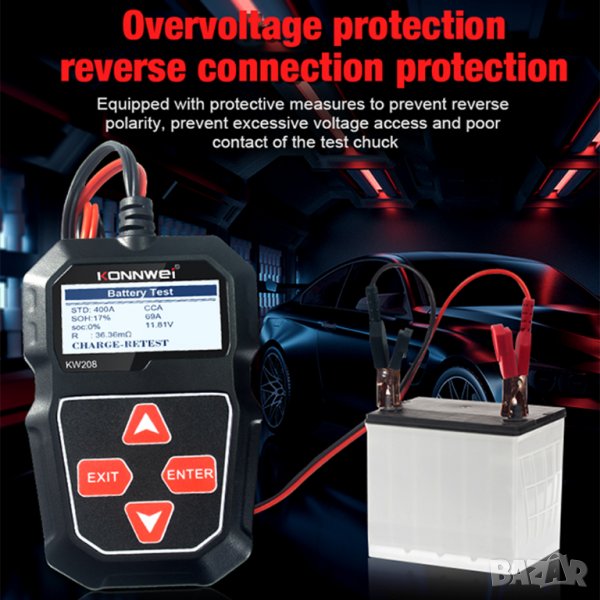 Тестер за акумулатор за автомобил за кола за камион за мотор, уред за тест на акумулатори AGM и др