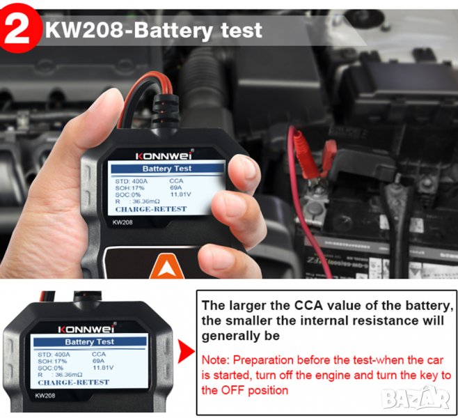 8. Тестовите стандарти включва понастоящем повечето стандарти за батерии в света, CCA, BCI, CA, MCA, JIS, DIN, IEC, EN, SAE, GB.