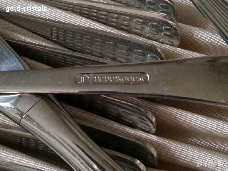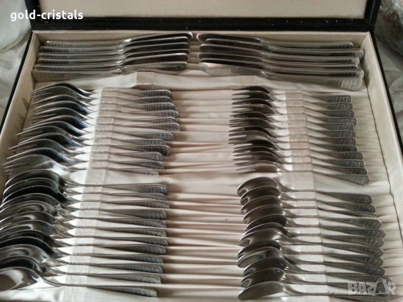 Български прибори за хранене вилици лъжици ножове лъжички вилички по 12бр от прибор в голяма кожена кутия неизползвани сервиз комплект сет лот ретро арт декор винтидж колекция стари антикварни предмети обзавеждане за дома и семейството подходящи за подарък за ценители и колекционери