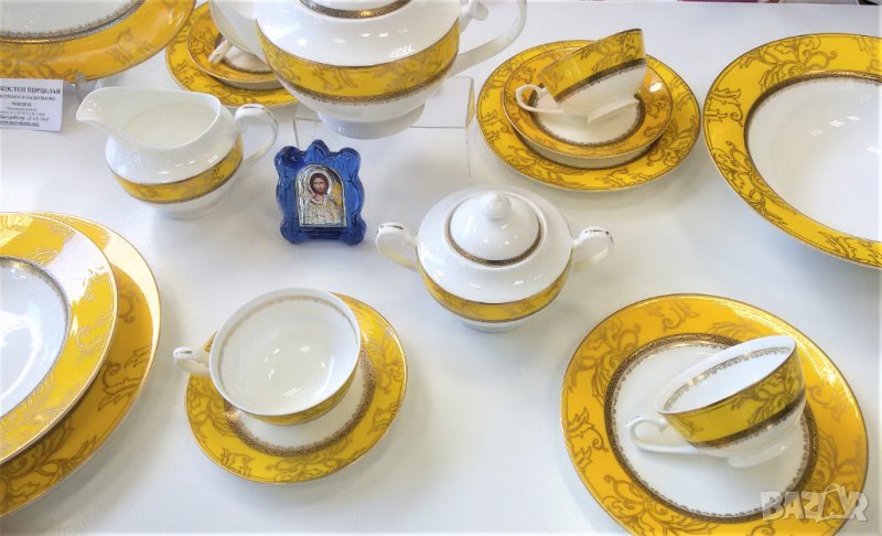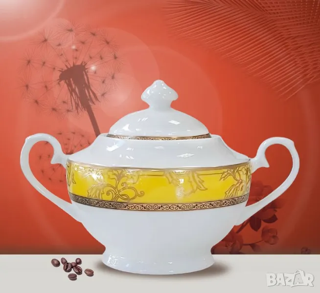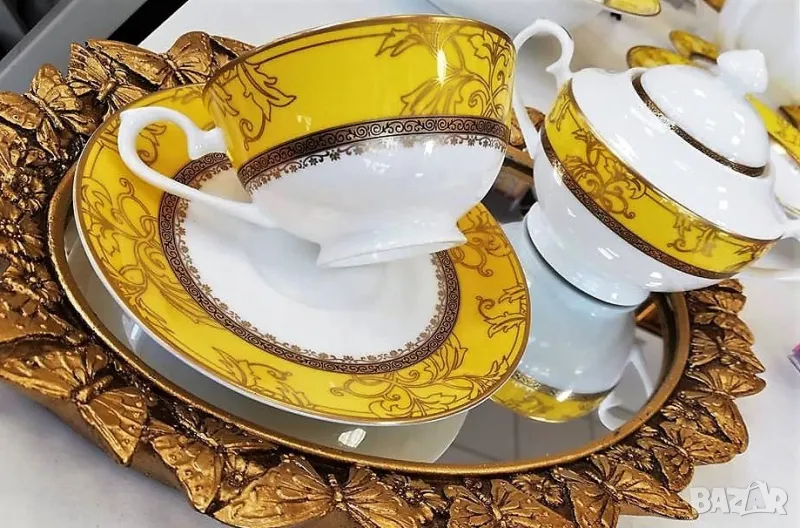 Луксозен комплект чаши с чинийки - 4 части от костен порцелан YoLiSa за чай, кафе или капучино.