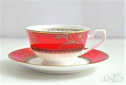 Подходящи чаши за ежедневна употреба или празничен подарък, за всички любители на червеният цвят и луксозния, качествен порцелан.