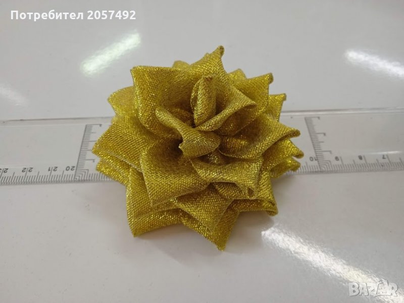 и сребърни рози от органза. Диаметърът на готовите рози е между 8 и 9 см,