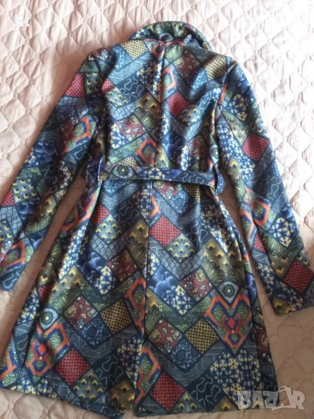 Дамско цветно манто,в отлично състояние.Цялостна дължина от рамото-82см,ръкав-61см.