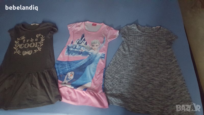 Сн 9 - сива рокля НМ с цип на гърба, А-силует, пада тежко и рокля Дисни с Елза, отлични, 7 лв. (Роклята с надписи е подарък);