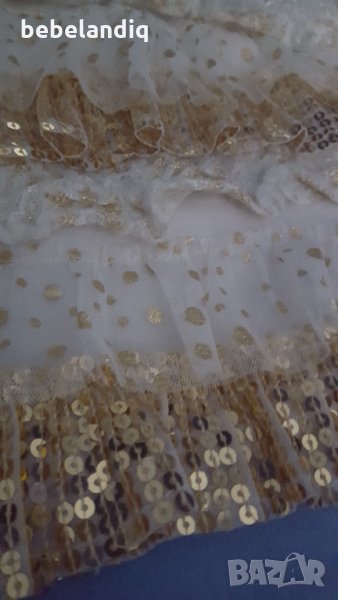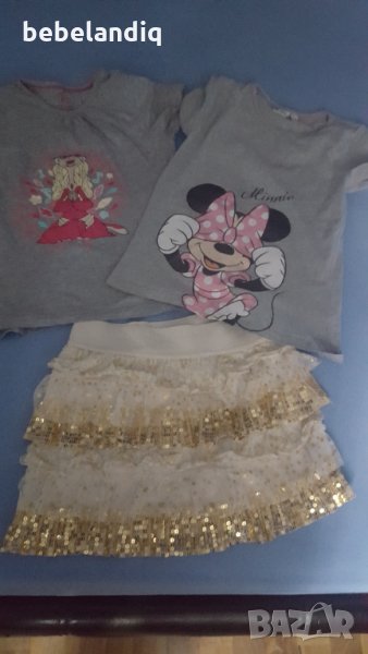 Сн 6, 7, 8 - ефектна къса пола със златисти поети и две тениски към нея, отлични, 7 лв;