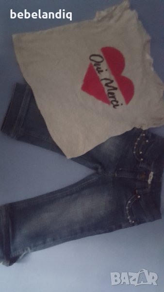 Сн 3, 4, 5 - готина блузка ТВ с 3д апликация и къси дънки с камъчета и нашивки, отлични, 7 лв;