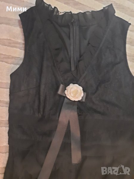 Роклята е изключително красива, обличана веднъж по повод, като нова. Дантелата е мека, приятна на допир, с къса подплата. Брошката е допълнително сложена, може да се свали. Подобна на рокля от колекцията на guess