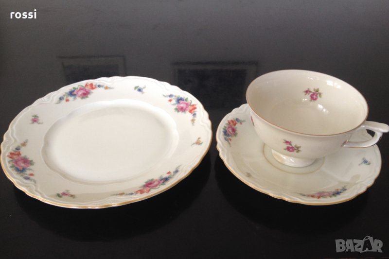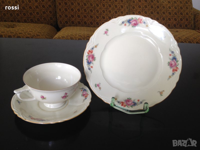 Schönwald 1935 г. Нов немски комплект трио за чай/кафе и десерт, чаша и 2 чинии, сервиз, сет, чиния → Обява 33422815