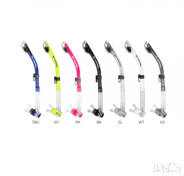 Патентована система с клапа в горната част на шнорхела, която предотвратява проникването на вода и го оставя сух, дори и при случайно потапяне.