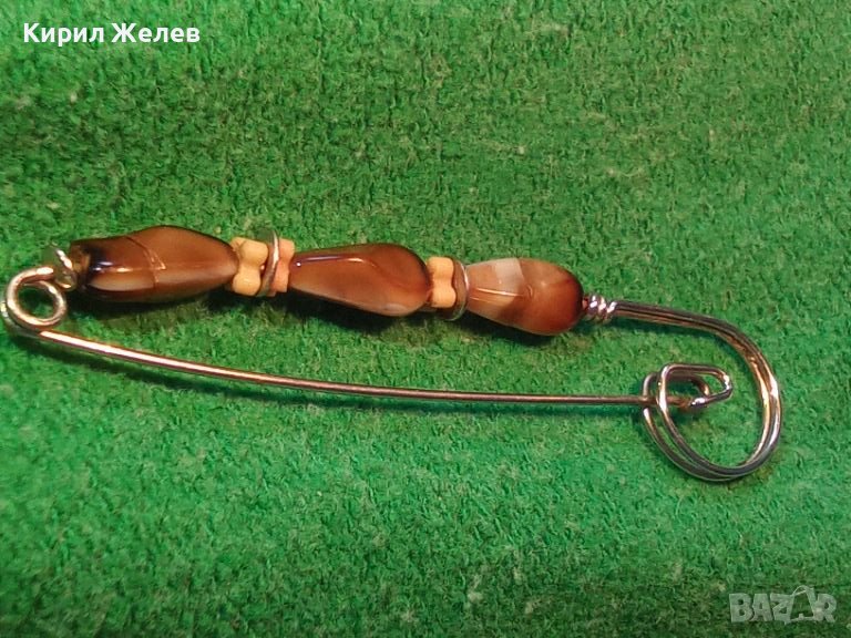 СТАРА АРТ ДЕКО РЕТРО БРОШКА с ЯСПИС АРТ ИГЛА ФИБУЛА 22152