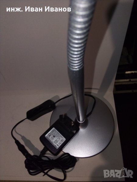 Коментар: светодиодна лампа за бюро или работна маса със сензорно избиране на яркостта на 3 степени. Ползвам една такава лампа от 1 година и няма никакви проблеми.Захранва се от адаптор с електро-безопастно напрежение. Светещата част е съставена от 25 светодиода тип 2835. Светодиодите са запоени върху правоъгълна алуминиева печатна платка за добро охлаждане. Свързването е 5 светодиода последователно и 5 такива светодиодни групи в паралел. Този тип светодиоди 2835 е най-масовият произвеждан тип светодиоди в световен мащаб и ако се наложи смяна на светодиод след време ще може лесно да се ремонтира.На захранващият кабел има ключ и свързващи букси (ако човек се спъне в кабела, захранването се прекъсва без излишни проблеми)
