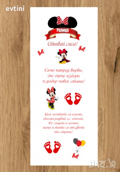 Ето тук се включваме и ние като Ви изработим платно за прощъпулник според Вашите желания и персонализирано с името на детето и датата на това събитие.