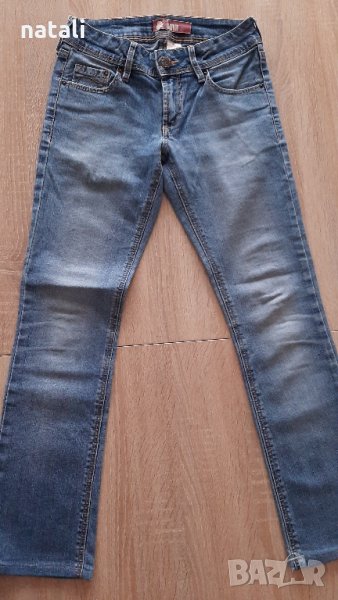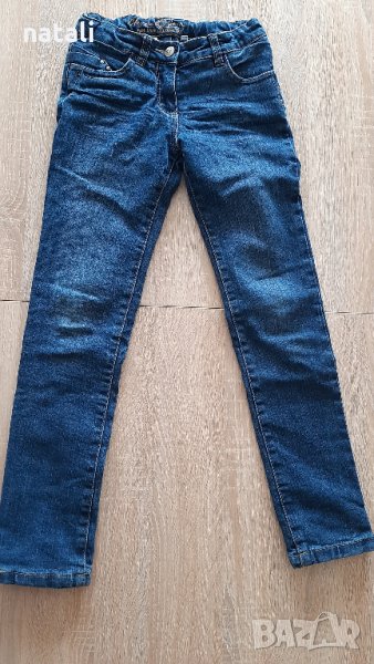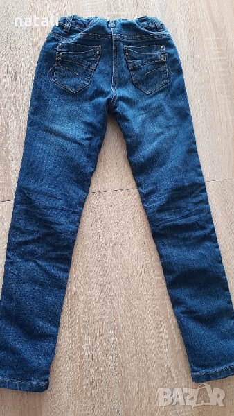 Дънков панталон с памучна подплата, идеален за зимата. Широчината в талията се регулира с ластик с копчета. За слабичко дете. Цена 10 лв.