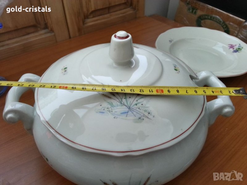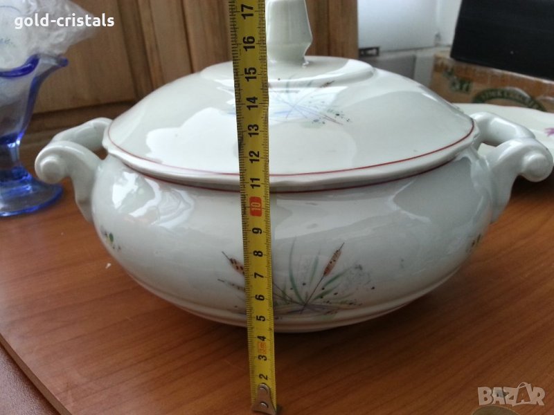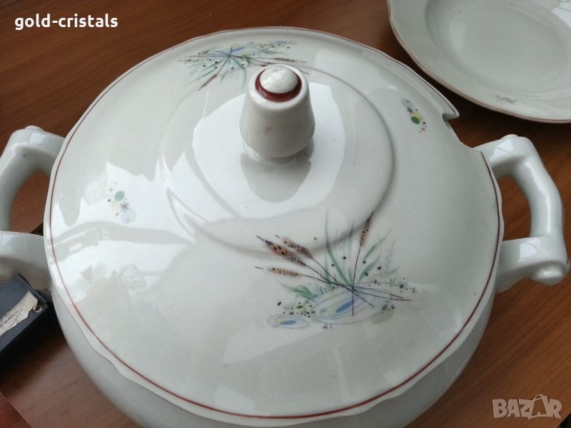 Стар български порцелан супник маркиран без забележки неизползван ретро арт декор винтидж колекция стар има и чинии плитки 6бр. дълбоки 6бр елипси 6бр голяма плато елипса сосиера и супник за целия сервиз 249лв подходящи за подарък за ценители и колекционери