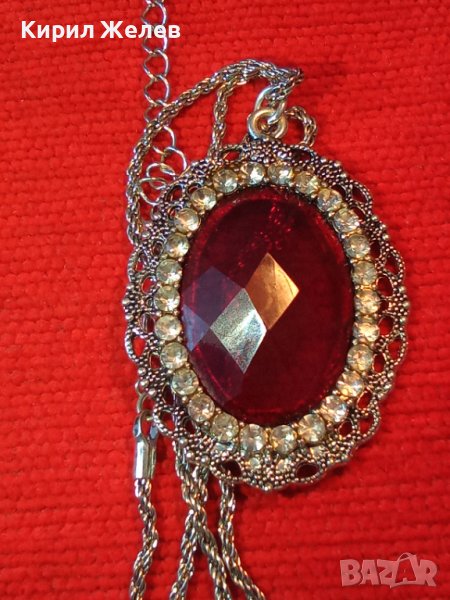 AVON ПОСРЕБРЕНО КРАСИВО СКЪПОЦЕННО КОЛИЕ ФАСЕТИРАН ЦВЕТЕН БОХЕМСКИ КРИСТАЛ 12579