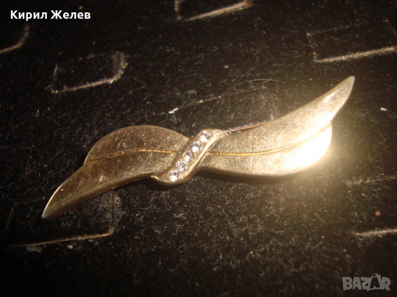ПОЗЛАТЕНА СТАРА КРАСИВА БРОШКА с ЦИРКОНИ АРТ НУВО СТИЛ ПАНДЕЛКА БРОНЗ с ПОЗЛАТА 23437