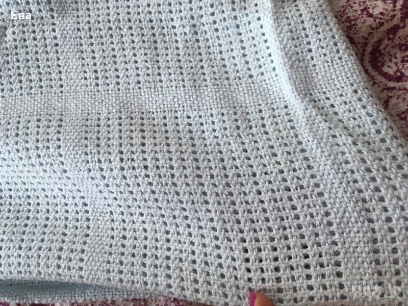 Синьото одеало от снимките е същото, просто съм го снимала за референция да се добие престава какво е одеалото!