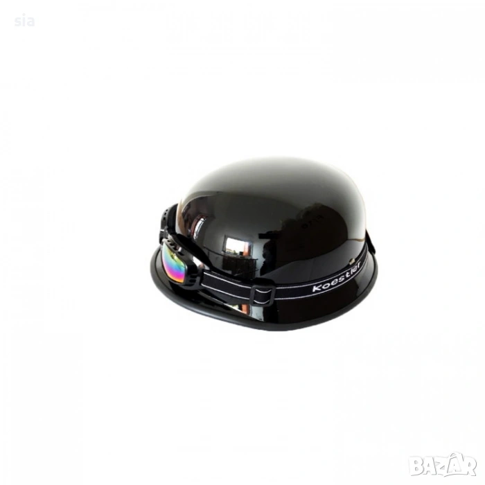 Каската е подходяща за чопъри. Изключително удобна и практична каска. Каската е изработена от висококачествени материали осигуряващи Вашият комфорт и безопасност при шофиране. Покритие: Никел Аеродинамичен дизайн. Лека и стилна конструкция. Комфортна вътрешна облицовка. Комплекта включва каска + очила с тъмно стъкло.