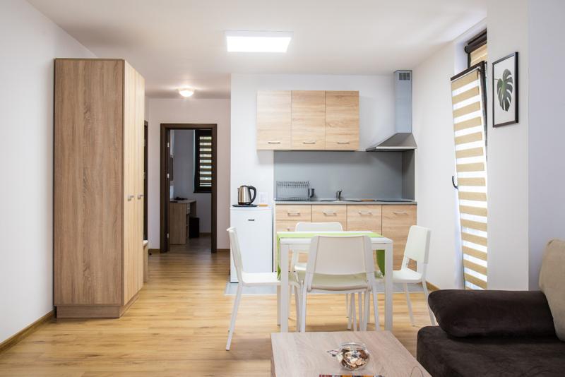 Имотът се предлага напълно обзаведен с чисто нови мебели и ел. уреди. LED телевизори. Кухните са оборудвани с хладилник, котлони, аспиратор, електрическа кана, кухненски прибори и съдове, пералня. Осигурени са хавлии, спално бельо, чехли, тоалетни принадлежности, ютия, маса за гадене, сешоар.