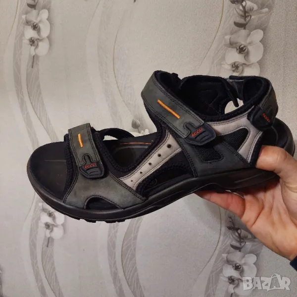 ECCO сандали. Комфортът на тези сандали се осигурява от мека и гъвкава горна част на материала. Наслаждавайте се на летни разходки, без да се притеснявате от подути и уморени крака! Интериорът на този модел мъжки сандали е завършен с мек и устойчив на абразия материал. Удобната подплата има положителен ефект върху вентилацията на краката и комфорта по време на ходене. Омекотяване, мекота и отлична вентилация на краката - всичко това се осигурява от удобна стелка, изработена от траен материал. Този модел сандали ще работи в горещо време! Основният компонент на подметката е полиуретан. Леката и гъвкава полиуретанова подметка прави тези обувки идеалният избор за горещите дни. Те се съчетават добре с ежедневни летни тоалети.