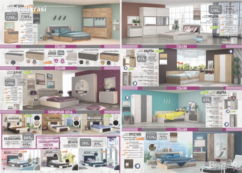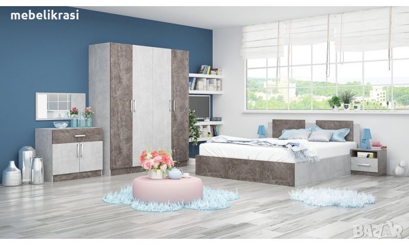 Спален комплект ”Ала” притежава всичко необходимо за обзавеждането на една съвременна спалня. Разполага със спално легло с амортисьорен механизъм, легло за еднолицев и двулицев матрак с размери: 160/200 см, като за двулицевият е нужна допълнителна подматрачна рамка. Две нощни шкафчета с чекмедже и четирикрилен гардероб с вътрешно разпределение - пет рафта и лост за закачалки. Допълнително може да закупите матрак за леглото, огледало и скрин с две вратички и чекмедже. В посочената цена НЕ е включен матрак за леглото!