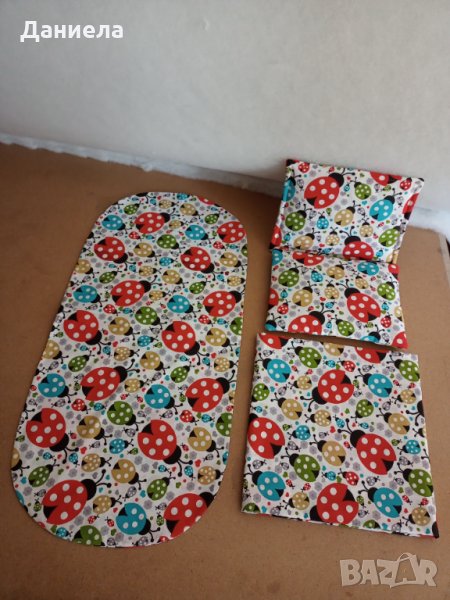 Изработвам по поръчка летен /зимен комплект за бебешка количка. Включва 2 възглавнички - по-тънка и по-дебела, калъф за матраче с цип или чаршафче, по желание с ластик, горен чаршаф двоен (плик за олекотена завивка). Може да поръчате и мини обиколник за количка, или олекотена завивка. Изработени от ранфорс. За избор на десен - на съобщение, или на тел. 0889354990