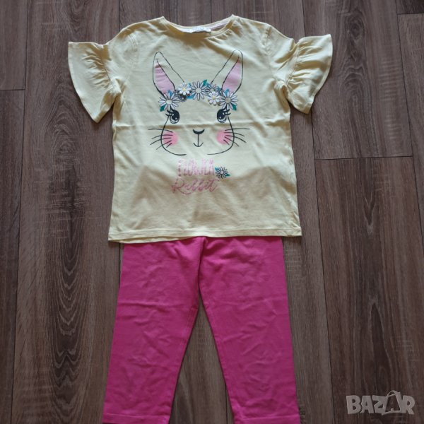 4. Сет на Terranova - жълта туника със зайче с падащи ръкави и 3/4 розово клинче. Размер 128-134. Цена за сета 6 лв. ( клинчето има една зашита дупчица отзад).