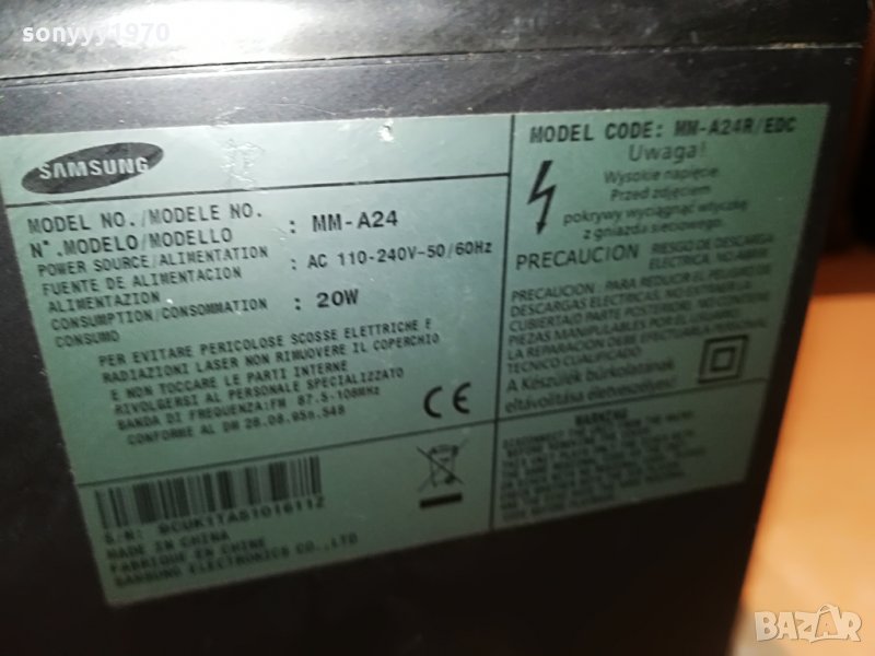 samsung mm-a24 usb/cd receiver germany-внос германия свири много яко-има юсб и работи с флашка-здрав тунер и усилвател-диска не чете-пращаме със спиди или еконт с преглед и тест след превод на капаро за куриерската услуга поради зачестили некоректни потребители-поръчки само тук в саита! по телефона и със смс не! краини цени! бартери не правиме! ПАРИ НЕ ВРЪЩАМЕ! всеки ден нови неща-още 2-3 наши обяви тук