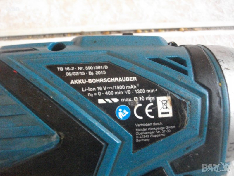 литий-йон технология,боди-само тяло за винтоверт,16 волтово.Немско оригинално професионално производство 2015г,с метални части вътре,издържащи на по-интензивните натоварвания,модел на Топ Крафт,от новите,по-малки,с олекотен дизайн и ергономични размери.Внос Англия.Марка и модел-Top Craft TB 16-2.Запазен външен вид и добро техническо състояние.работи силно и мощно,бързо и ефикасно.Мощност на мотора-16 волта,1,5 ампера,2 скорости,обороти-0-400 и 0-1300 в минута,19 степени на натягане,отделно функция пробиване.Алуминиев напръстник на степените.Плавен старт на спусъка.Реверс смяна посока.Светлинна торна тристепенна индикация ниво заряд батерия.Долен силен Лед прожектор.Гумирани противоударни и нехлъзгащи се покрития на част от корпуса и дръжката.За батерии литий-йонни,16 волтови или по-малък волтаж,тип шейна,стандартни универсални-немски,белгийски,холандски,френски.Съвместимост с марките Meister,Workzone,Uing Kraft,Basic и други.