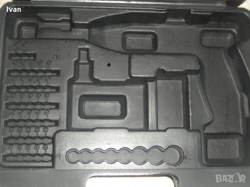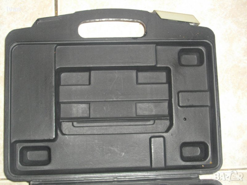 мини винтоверт. Марка на куфара - DURO. Немско оригинално производство. Размери - дължина 280 мм, ширина 210 мм, стр. дебелина - 85мм. Куфара е от твърда пластмаса ,която не потъва при натискане. Удобни твръди дръжки за носене. Цвят - черен. Вътре ес вградени места за мини винтоверт и зарядно, място за накрайници - битове - 32 броя места, отделно 8 места за камъни и адаптери.Другата вътрешна страна е с вграден джоб.