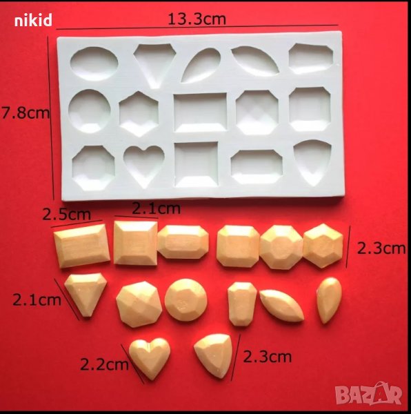Камъни диаманти геометрични микс силиконов молд форма фондан шоколад смола → Обява 33467000