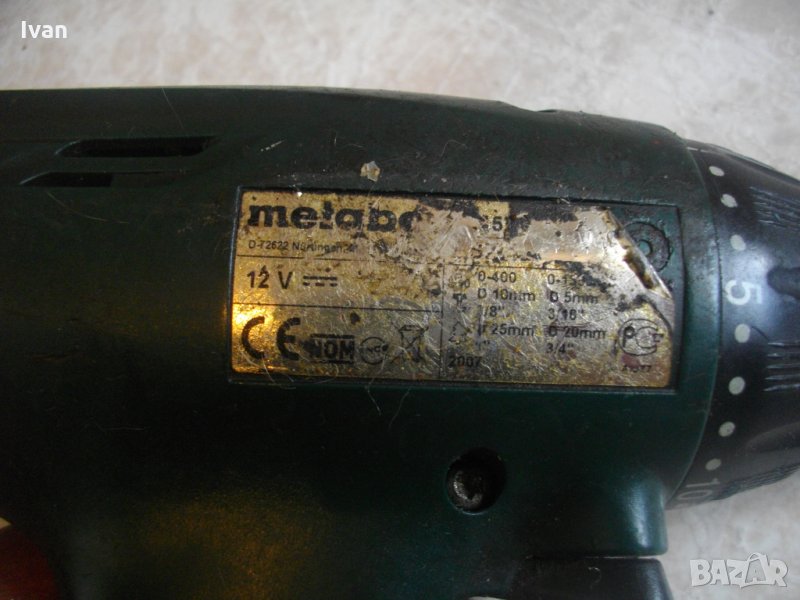 Описание на 12 волтово боди Метабо - немско-2007 г-13мм патронник-Импулсен модел- марка и модел -Metabo BSZ12 Impulse. ЦЕНА 59 ЛВ. Масивен,силен и мощен винтоверт дрелка,професионален модел на Метабо,с импулсна функция.Немско оригинално производство 2007 година. Марка и модел-Metabo BSZ 12 Impulse.Машината работи и с обикновенни никел-кадмиеви-селенови батерии,и с литий-йонни.Работено е с нея,но е със запазен външен вид и отлично техническо състояние.Работи много добре-силно,мощно,бързо и ефективно.Импулсната функция-също.Мощност на мотора-12 волта,2 скорости,20 степени на натягане,отделно функция пробиване.Патронник-оригиналне на Метабо,с метален пристягащ пръстен отпред,самонатягащ до 10мм.Реверс смяна посока,плавен старт на спусъка-шпиндел.Горен превключвател за импулса.Гумирани задни покрития нехлъзгащи и противоударни.