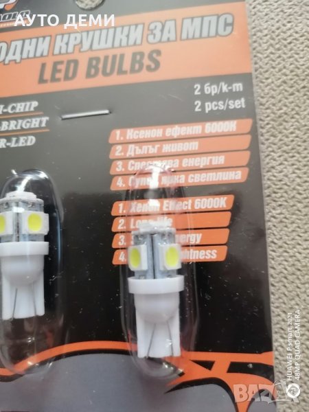 Цена за 1 комплект от 2 броя ЛЕД Т10 светещи в бяла светлина с 5 диода - 3.40 лв .