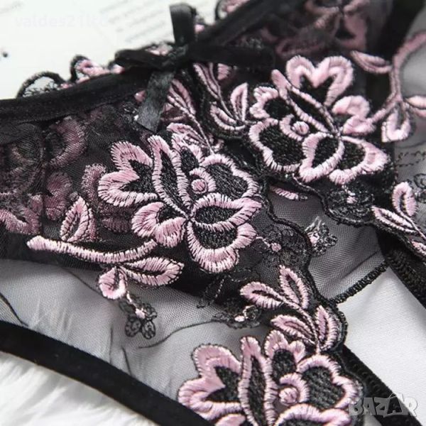 От фина и нежна на допир дантела с флорална бродерия и цветови десен в четири цвята;