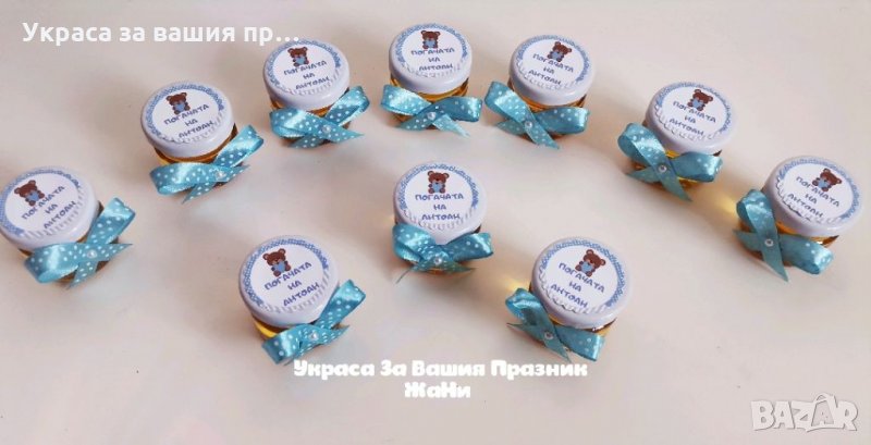 Подаръчета за гостите бурканчета с мед за бебешка погача на тема Мечета → Обява 33477940