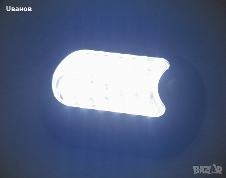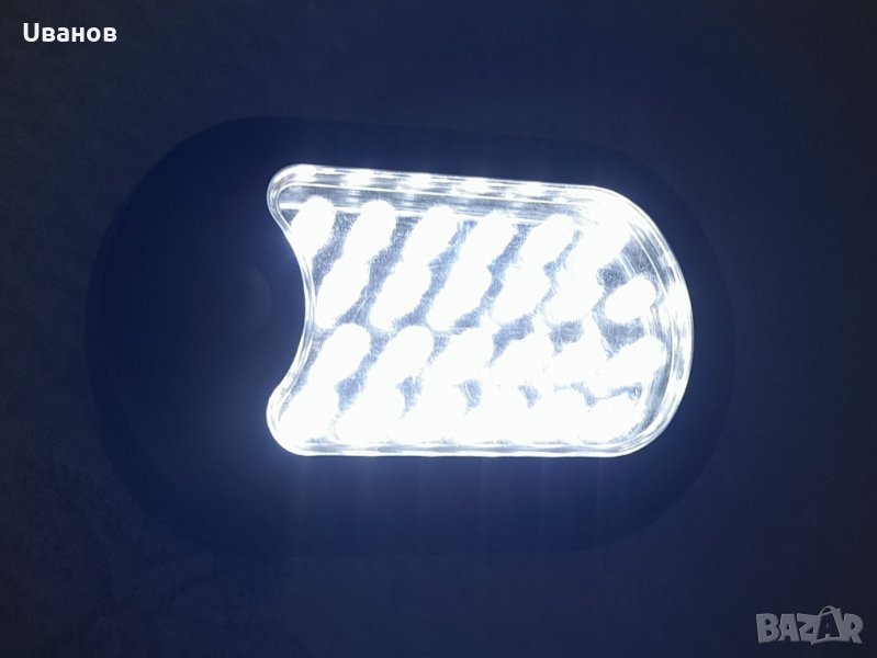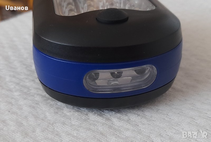 Фенерче/ лампа за къмпинг с кука и магнит за закрепяне, доста запазено. Има две светещи части - голямата е с 24 бр. светодиоди, а малката е от 3 бр. Работи с 3 бр. батерии Х 1.5V ААА (включени в комплекта).