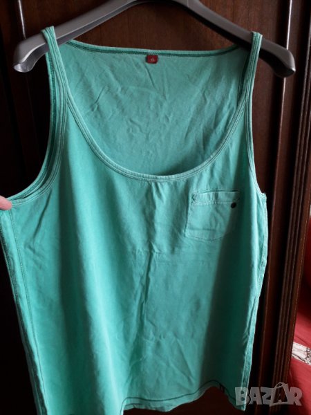 Дамски летен дълбоко изрязан потник с джобче, светлозелен цвят. Памучна материя, свободно падащ. Размер М-Л