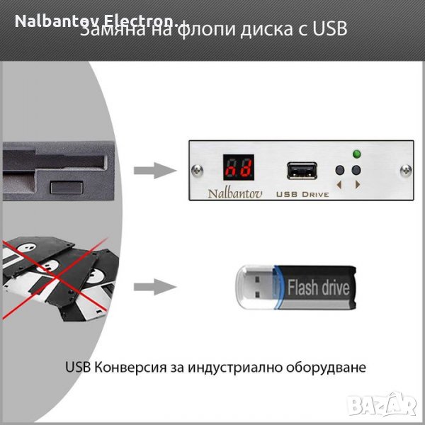 Nalbantov N-Drive Industrial емулатор работи на почти всички марки и модели индустриално оборудване, които имат стандартно 3,5″, компактно Slim или 5,25″ флопи.