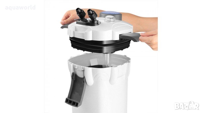 Този филтър е подходящ, както за морски, така и за сладководни аквариуми. Той е мощен, ефективен и същевременно тих. Лесен е за инсталиране и поддръжка, има три кошници за различни основи – за механични, биологични и химически вещества. Филтърът притежава керамични валове за по-дълъг експлоатационен живот на ротора. Вградената UV-лампа (9W) предотвратява появата на зелени водорасли, патогенни бактерии и микроорганизми. Лампата се включва и изключва.Към него са включени всички аксесоари - тръби, маркучи, адаптери, дюзи и пълнител за механична филтрация.