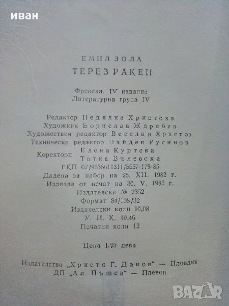 Терез Ракен - Емил Зола - 1985 г. → Обява 33499776