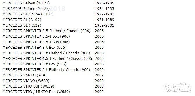 W209 W210 W211 W636 W638 W639 W212 W215 W218 W219 W220 W240