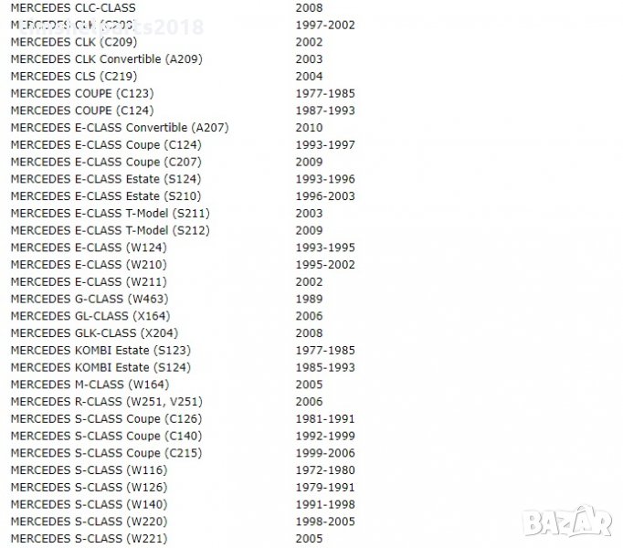W124 W129 W140 W163 W202 W203 W204 W207 W208