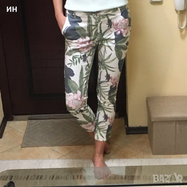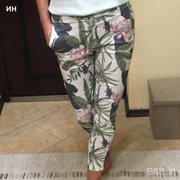 Продавам дамски летен панталон с интересен десен. Панталонът е леко еластичен и е с два предни джоба. Няма забележки по външния вид. Не се разменя за друга стока.